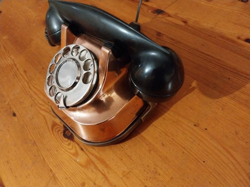 Ein belgisches Hoteltelefon mit Kupfergehäuse.
